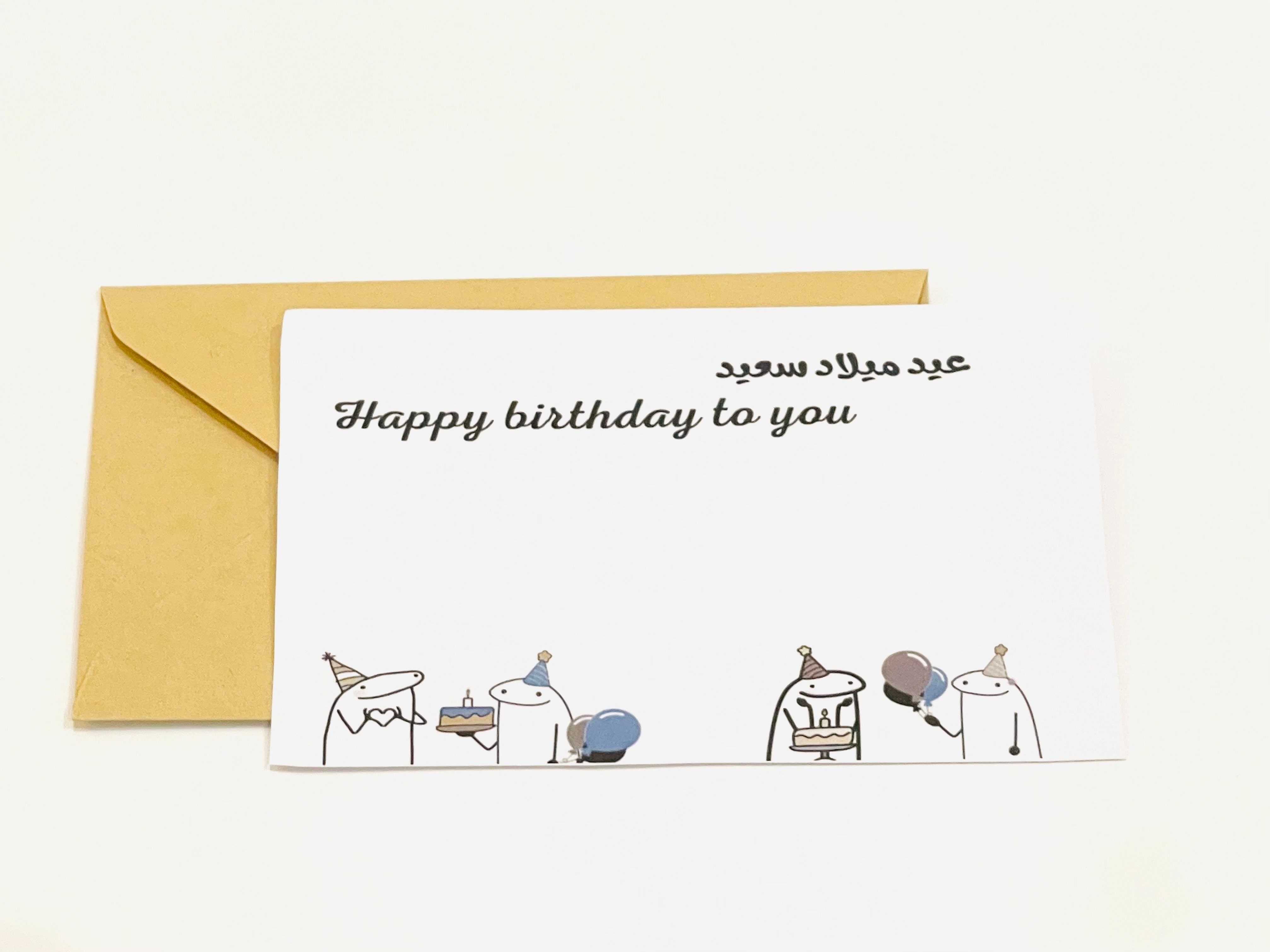 بطاقه تهنئة مغلفه ببلاستيك مقوى مع ظرف خارجي .. بإمكانكم إضافه عبارات أخرى من خلال كتابتها في خانه الملاحظات قبل تأكيد الطلب .